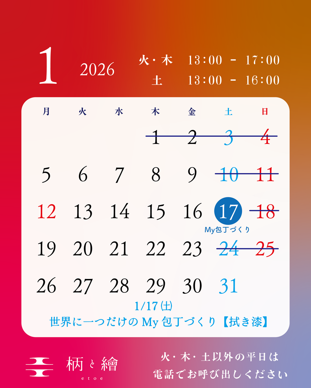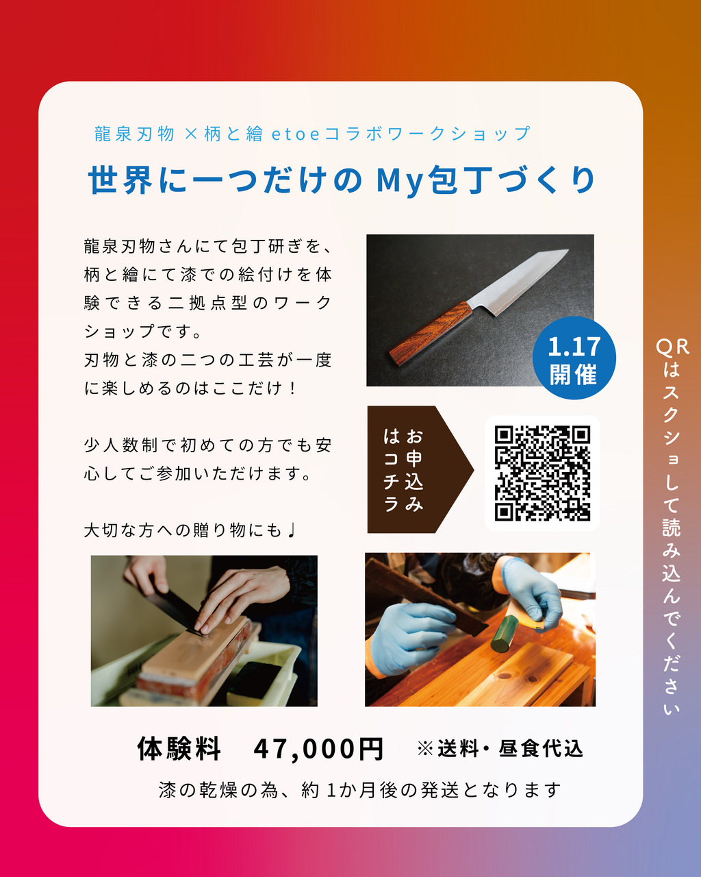 ⭐️1/17㈯⭐️龍泉刃物さんとのコラボワークショップ【拭漆】