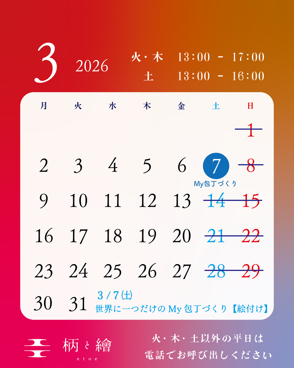 【3/7開催!世界に一つだけのMY包丁づくり】
