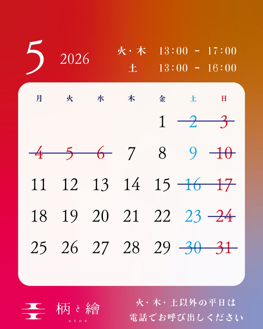 5月の営業日のご案内です。
